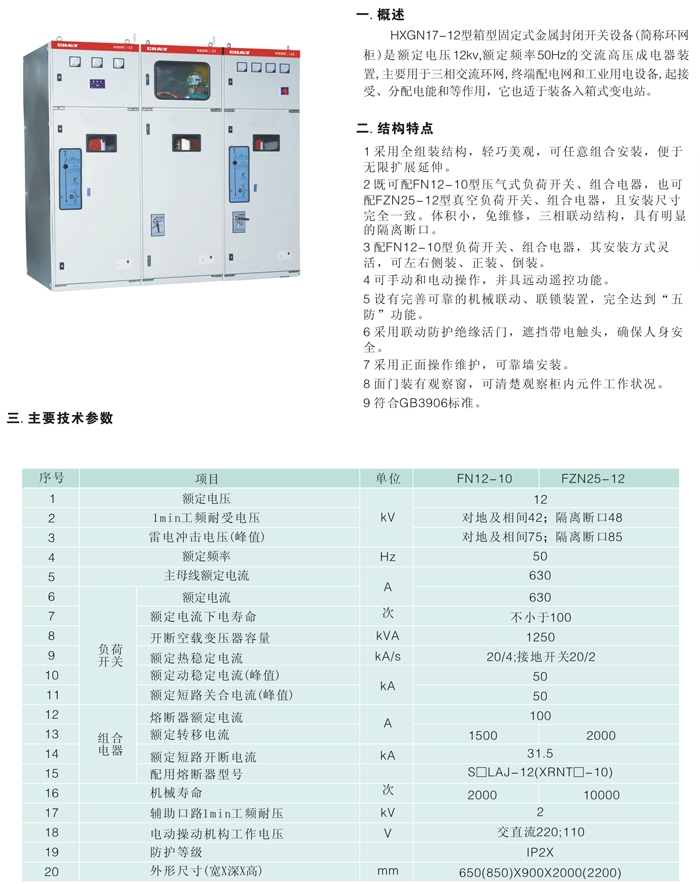 XGN66-12(Z)型固定式封閉開(kāi)關(guān)設(shè)備
